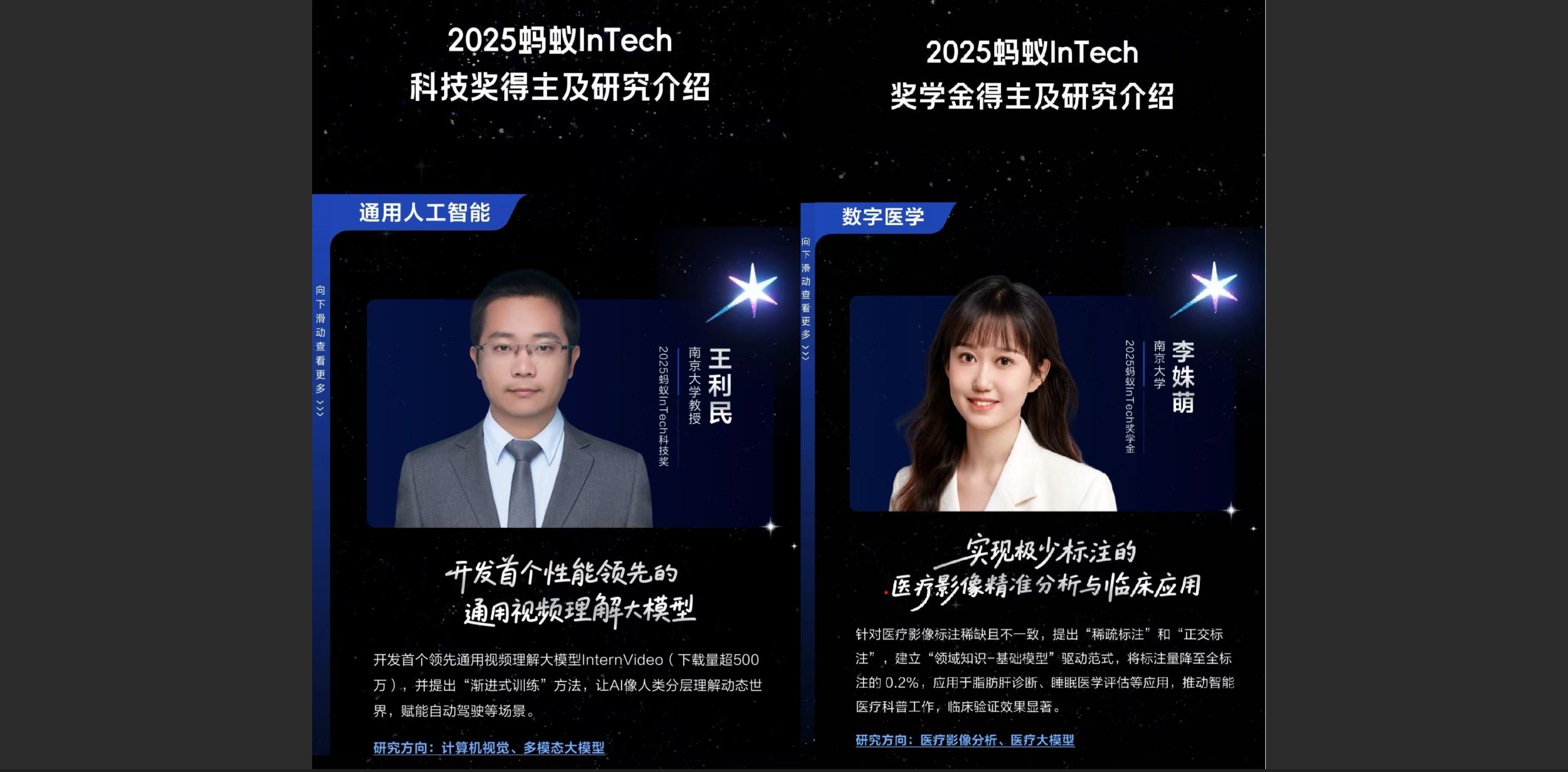 公司王利民教授获2025蚂蚁Intech科技奖,李姝萌博士生获蚂蚁Inte...