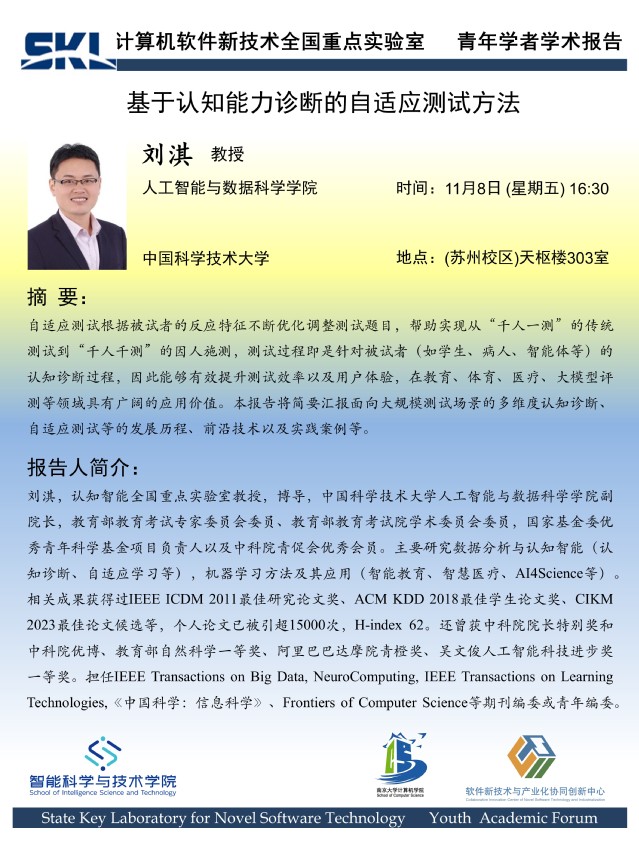 2024年11月8日 “软件新技术讲坛” 学术报告 - 刘淇 教授
