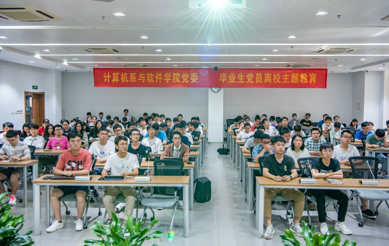 随后,武书记借用习近平总书记的话向计算机系所有毕业生党员提出三点期望:一、要有远大理想,砥砺奋斗。广大青年既是追梦者,也是圆梦人。追梦需要激情和理想,圆梦需要奋斗和奉献。广大青年应该在奋斗中释放青春激情;二、要勤奋学习,知行合一。梦想从学习开始,事业靠本领成就。广大青年要自觉加强学习,不断增强本领,既多读有字之书,也多读无字之书,注重学习人生经验和社会知识。同时要坚持知行合一,在实践中学真知、悟真谛;三、不忘初心,勇担大任。一代人有一代人的长征,一代人有一代人的担当。新时代中国青年应该积极拥抱新时代,奋进新时代,让青春在为祖国、为人民、为民族、为人类的奉献中焕发出更加绚丽的光彩。此外,武书记也希望在座的所有同学在今后的学习工作中,铭记“立大志,明大德,成大才,担大任”,努力践行“今日我以南大为荣,明日南大以我为荣”,发挥先锋模范作用,展现南大风采。