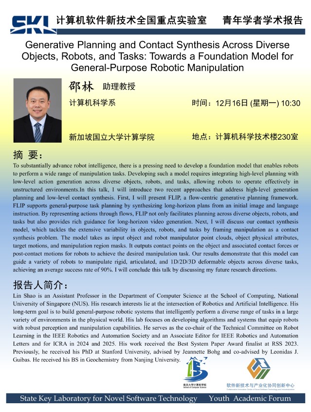 2024年12月16日 “软件新技术讲坛” 学术报告 - 邵林 助理教授