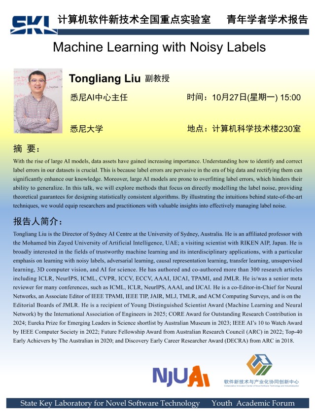 2025年10月27日“软件新技术讲坛” 学术报告 - Tongliang Liu 副教授