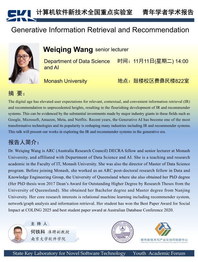 2025年11月11日“软件新技术讲坛”学术报告 - 王维清 senior lecturer