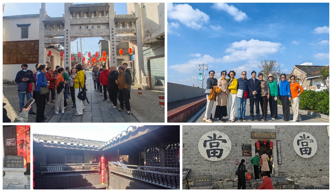 漫步运漕古镇,触摸漕运记忆。 首站抵达运漕古镇。在当地导游的带領下,我们穿梭于明清时期青石板铺就的老街,先来到清代徽派风格的"美人靠"古民居。接着来到明代当铺的石雕门楼间,细观李鸿章题写的“汇通天下”匾额,馆内陈列的展品见证了李鸿章与运漕的那段历史渊源,让人感叹世事的变迁。然后沿着运漕裕溪河岸漫步,只见裕溪河波光粼粼,河水悠悠流淌,河面上漕运船舶来来往往,这河水像是一条时光的丝带,串联起过去与现在。聆听当地导游讲述漕运码头的繁华往事。最后来到薛瑞丰砻坊,了解运漕地区农耕文化和商贸历史。闻着老街糕饼铺的芝麻香与木槌敲打糍粑的节奏,让这青石板街仿佛仍回荡着历史的余韵。