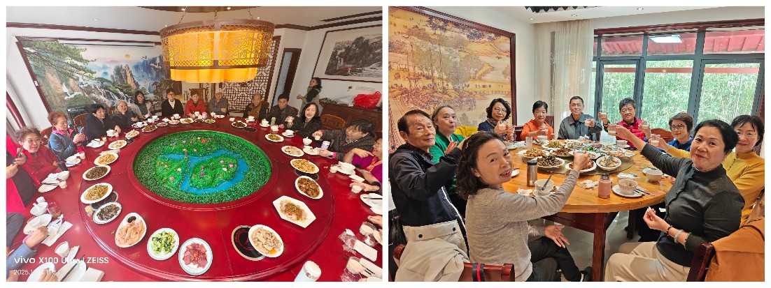 品味山野珍馐,共话往昔岁月。 中午,团队在源自源坊快乐农场享用了一顿充满乡土风味的午餐。青花瓷盘中的请蒸鲈鱼、盐水大虾,青粗陶锅里咕嘟作响的土鸡汤,以及缠绕齿间的鸡蛋裹豆腐,红烧猪蹄等丰盛菜肴,不仅满足了味蕾,更唤起了大家对往昔岁月的温馨回忆。