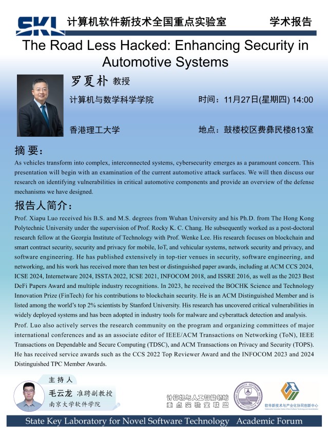 2025年11月27日“软件新技术讲坛”学术报告 - 罗夏朴 教授