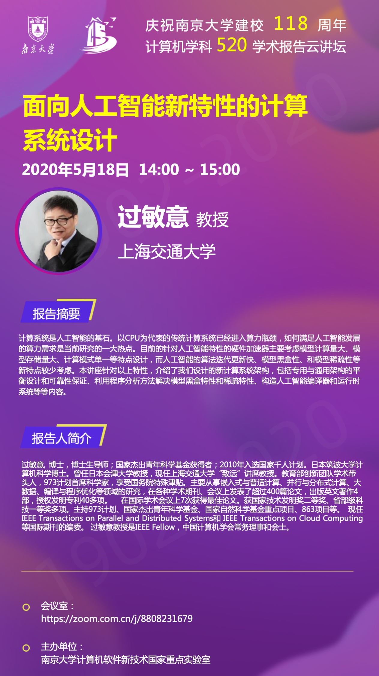 庆祝WILLIAMHILL在线体育投注建校118周年 计算机学科520学术报告云讲坛- 过敏意 教授