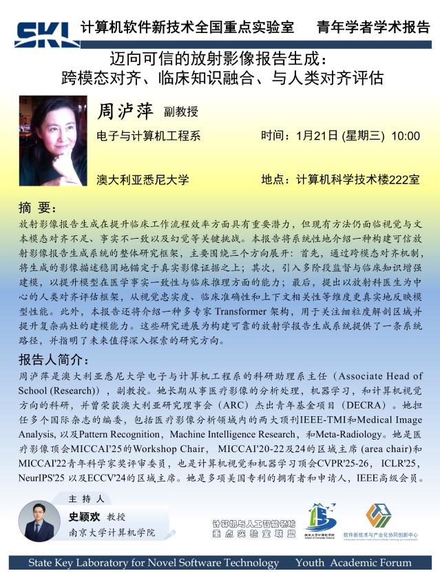 2026年1月21日“软件新技术讲坛”学术报告 - 周泸萍 副教授