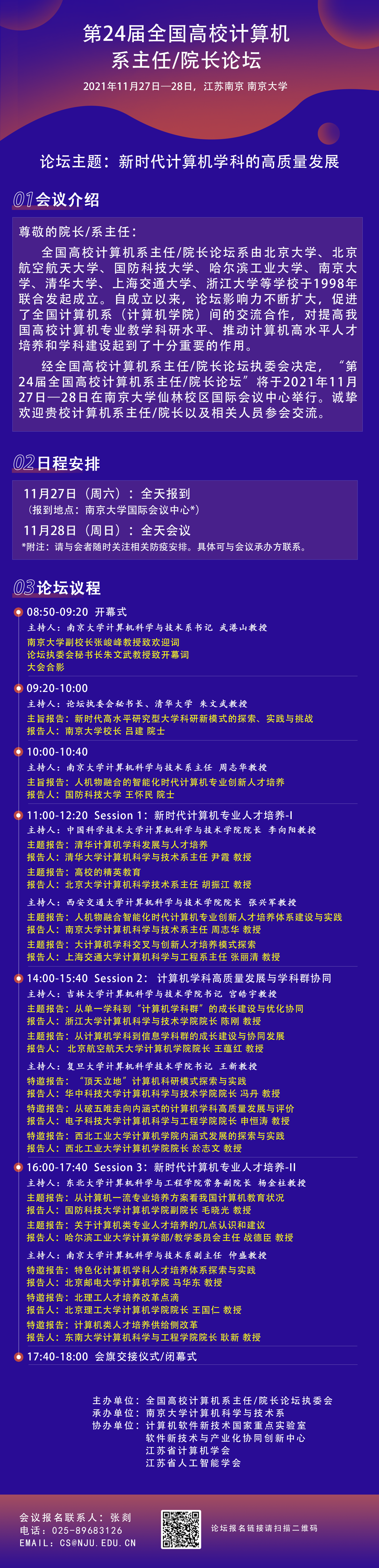 第24届全国高校计算机学科 经理/系主任论坛邀请信