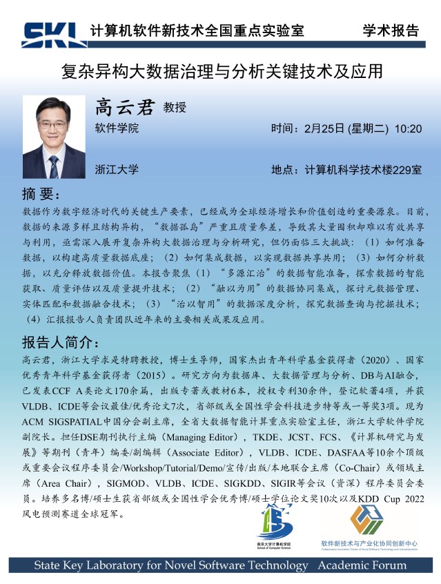2025年2月25日 “软件新技术讲坛” 学术报告 - 高云君 教授