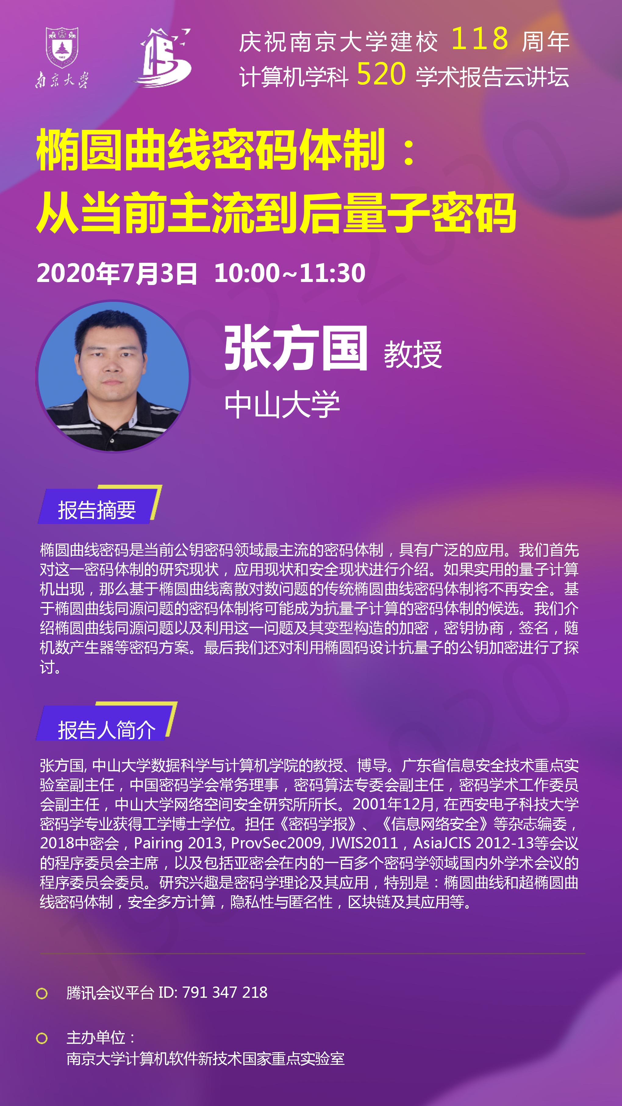 庆祝WILLIAMHILL在线体育投注建校118周年 计算机学科520学术报告云讲坛- 张方国 教授