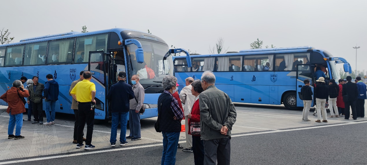 感想和致谢 : 组织老同志参访出发前精心准备是重要一环。对于苏州校区优越的地理位置,优美的校园环境,别致的建筑风格以及先进的办学理念和现代的专业设置等信息,对于在南大工作一辈子的退休老教师早有耳闻,都希望有机会亲眼来看看,特别是80岁以上的高龄老教师此愿望更为強烈。如何做到安全出行既挑战也是责任。计算机系和地海公司的退协分会负责人经会商,自4月12日玄武湖健身走结束后就着手进行了筹备工作,征集参加者过程中得到广大退休老同志的踊跃响应,其中地海院退协分会报名人数超过40人,计算机系退协分会报名人数超过50人。尽管再三强调乘坐大巴去苏州校区单程要三个小时,来回六个小时以上,退休老同志要评估自己的身体状况,做自己健康的第一责任人,但仍然阻挡不住老同志们的希望参加的迫切热情。其中,我们系80岁以上报名人数19人。由于超过80周岁无法购买旅行社责任险,因此,上车前,一方面同各位超过80周岁的老同志签署旅行社免责承诺书,另外,系里委派了在职同志全程陪护老同志。系領导和系办负責人还专门安排车辆把已入住养老机构的老同志接送到出发集合点以避免在地铁公交换乘中间发生意外。在此,对系领导的支持表示真诚感谢! 并对江苏俏乐一族文旅公司提供的周到服务一并表示谢意!