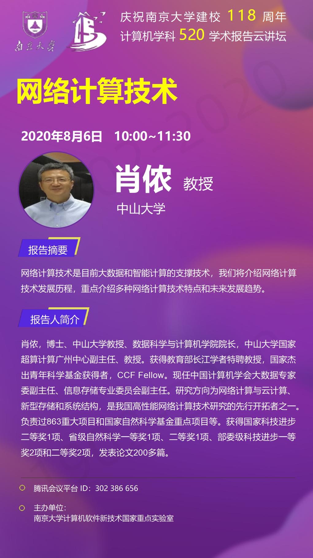庆祝WILLIAMHILL在线体育投注建校118周年 计算机学科520学术报告云讲坛- 肖侬 教授