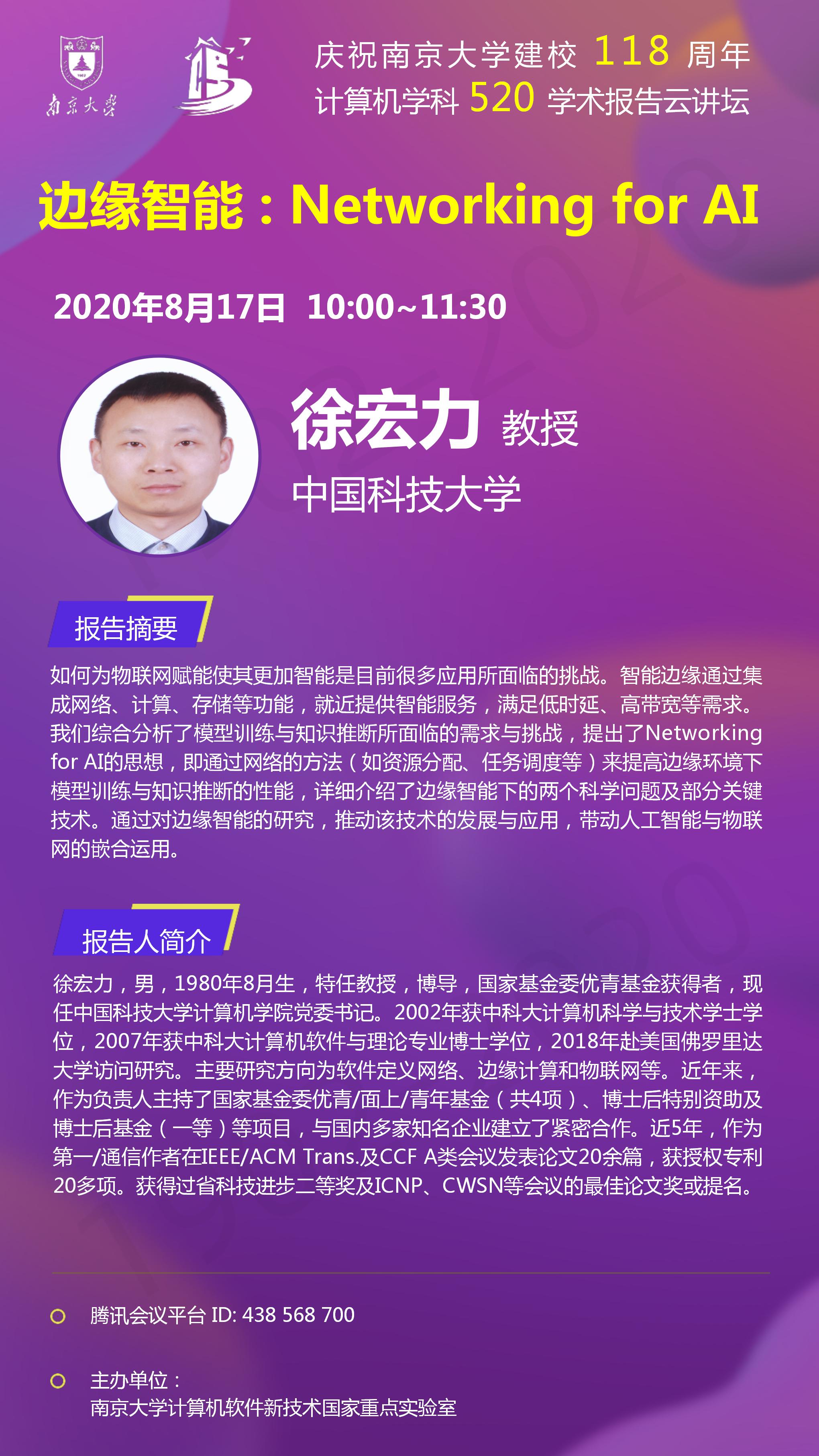 庆祝WILLIAMHILL在线体育投注建校118周年 计算机学科520学术报告云讲坛- 徐宏力 教授