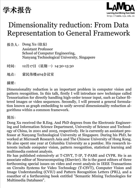 题目:Dimensionality reduction: From Data Representation to General Framework