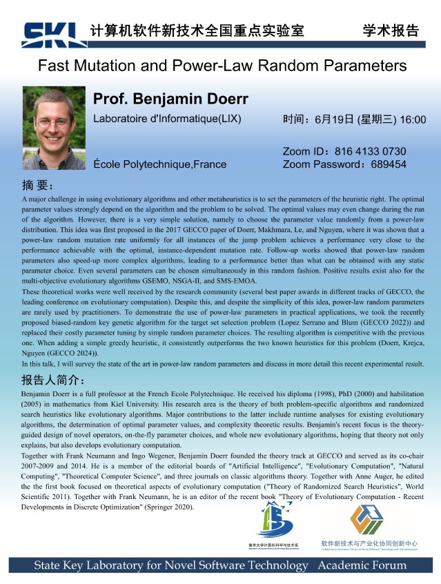 2024年6月19日 “软件新技术讲坛” 学术报告 - Prof. Benjamin Doerr