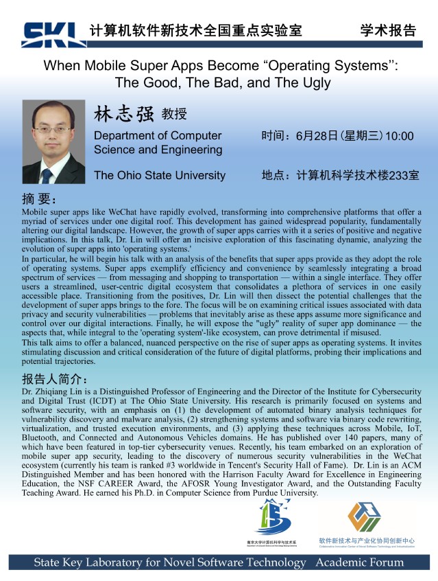 2023年6月28日 “软件新技术讲坛” 学术报告 - 林志强 教授
