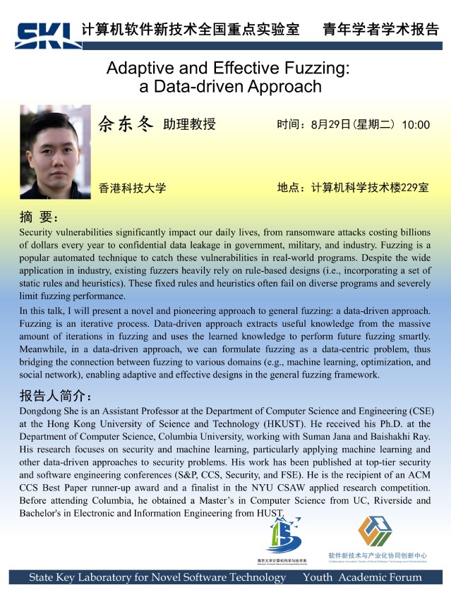2023年8月29日 “软件新技术讲坛” 学术报告 - 佘东冬 助理教授
