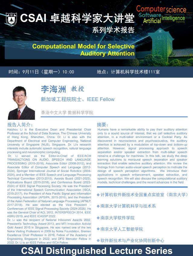 2023年9月11日 “CSAI卓越科学家大讲堂” 学术报告 - 李海洲 教授