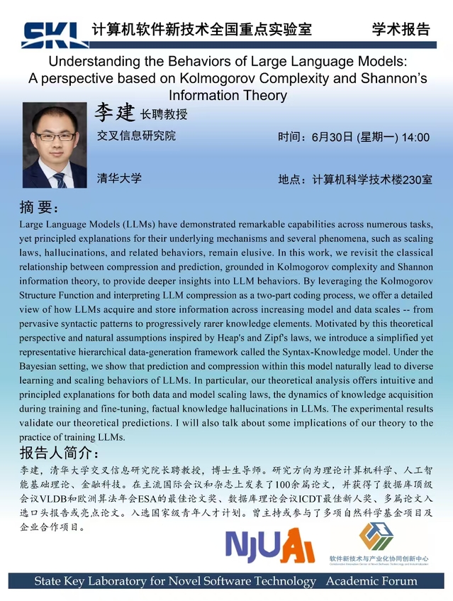2025年6月30日 “软件新技术讲坛” 学术报告 - 李建 长聘教授
