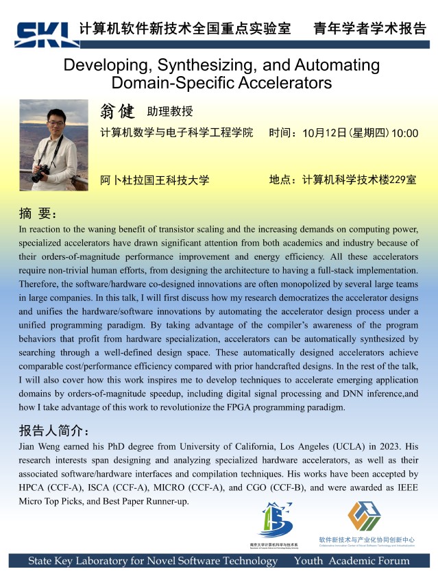2023年10月12日 “软件新技术讲坛” 学术报告 - 翁健 助理教授