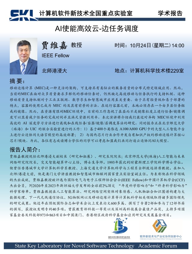 2023年10月24日 “软件新技术讲坛” 学术报告 - 贾维嘉 教授