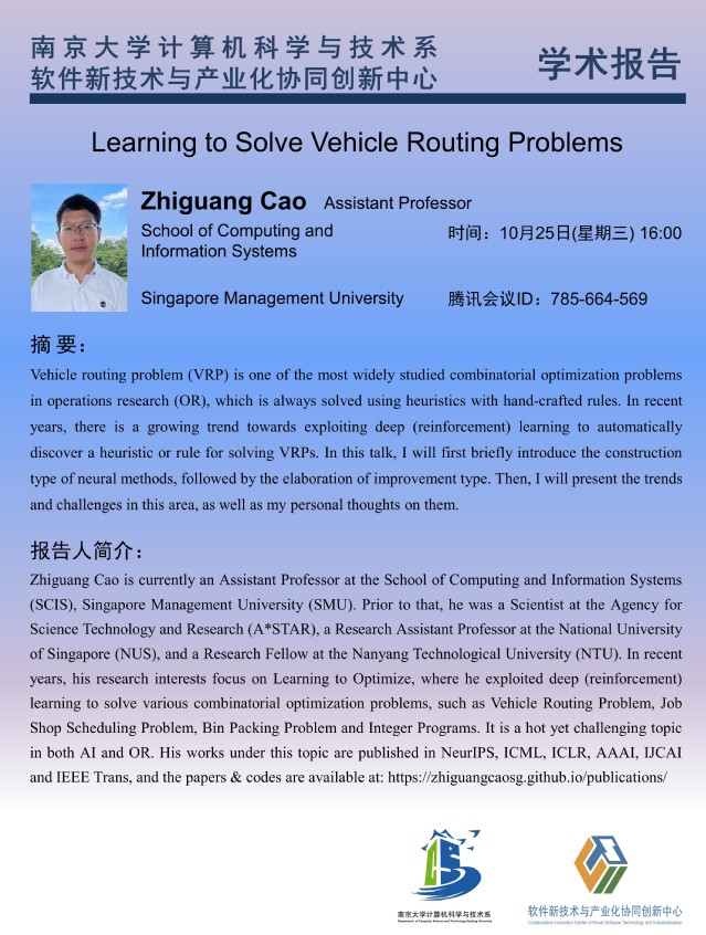 2023年10月25日 “软件新技术讲坛” 学术报告- Zhiguang Cao Assistant Professor