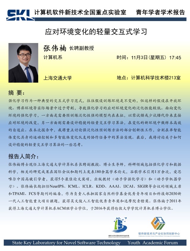 2023年11月3日 “软件新技术讲坛” 学术报告 - 张伟楠 长聘副教授