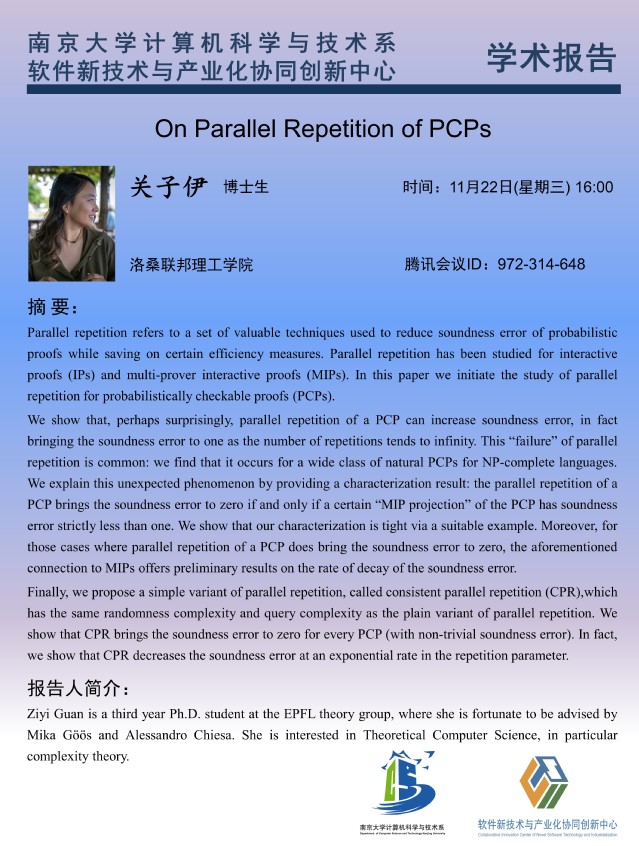 2023年11月22日 “软件新技术讲坛” 学术报告 - 关子伊 博士生
