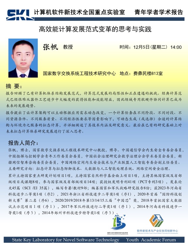 2023年12月5日 “软件新技术讲坛” 学术报告- 张帆 教授