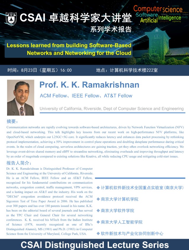 2024年8月23日 “CSAI卓越科学家大讲堂” 学术报告 - Prof. K. K. Ramakrishnan