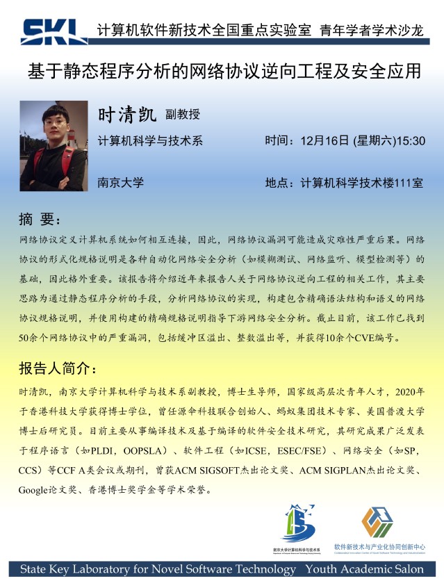 2023年12月16日 “青年学者论坛” 学术报告 - 时清凯 副教授