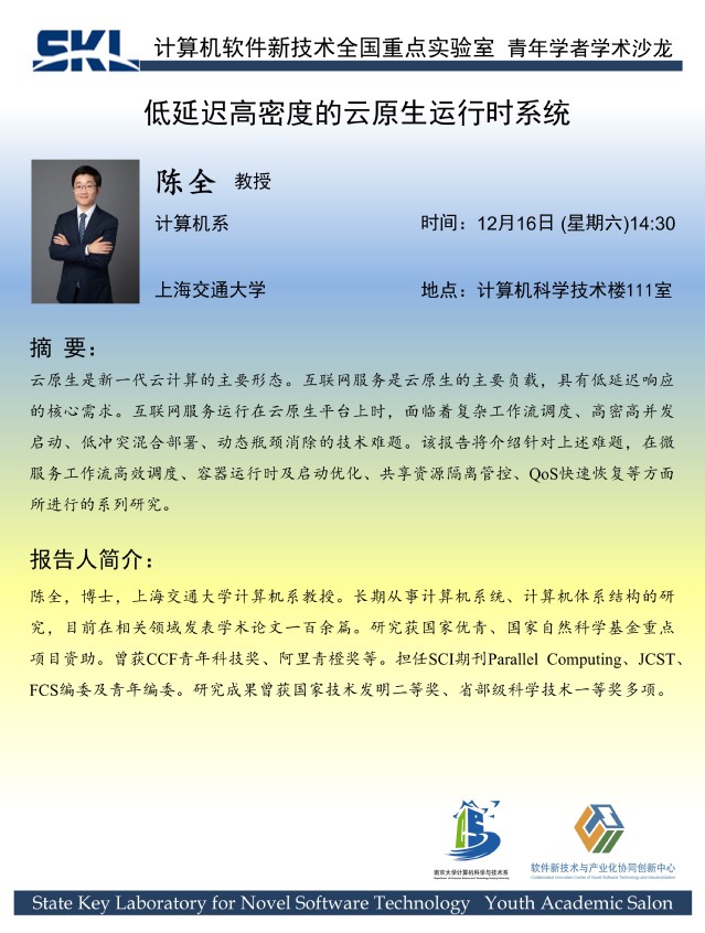 2023年12月16日 “青年学者论坛” 学术报告 - 陈全 教授