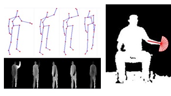 基于Kinect深度摄像头提供的深度图像和关键点信息,研究:(1)手部和肢体交互动作的定义、学习和分类(2)手部和肢体姿态的三维重建(3)人脸判别 | |
